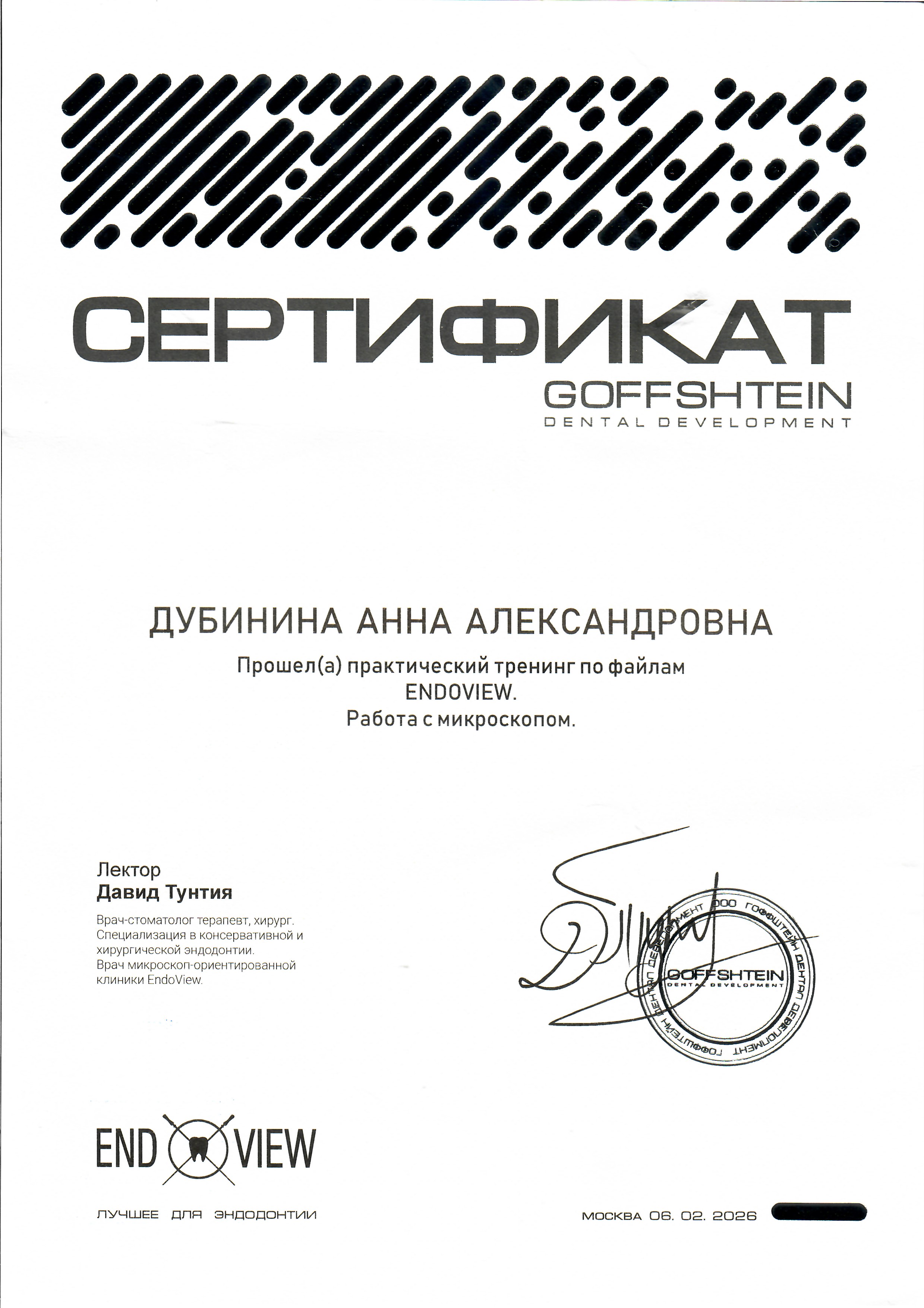 2006 г. Курс «Эстетическое восстановление зубов методом прямой реставрации»