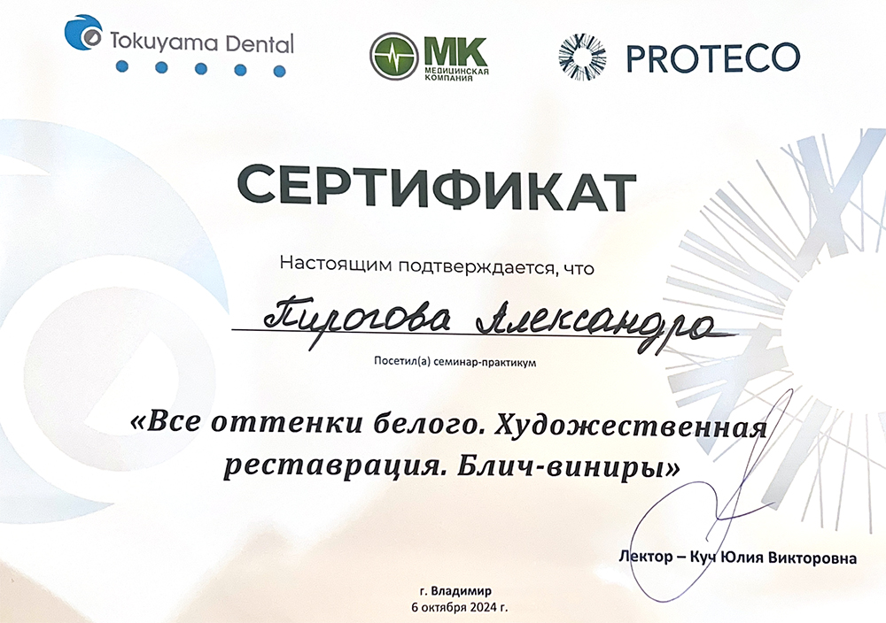 Александра Александровна считает, что красивая улыбка — это результат точного планирования и командной работы врача и пациента. В своей практике она сочетает современные технологии, проверенные методики и внимательный подход к целям каждого человека.